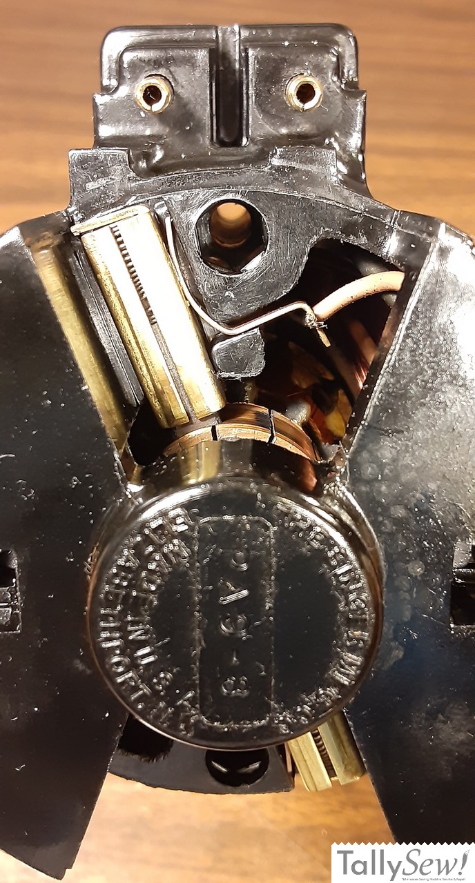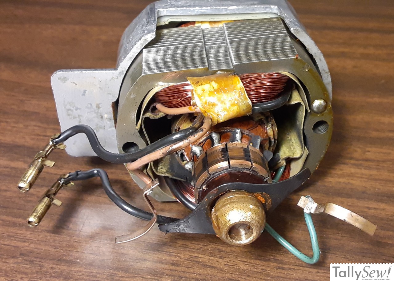 I recently acquired a Singer 401 Slant-O-Matic at auction. When I got it on my bench for testing I found that the motor would not spin. After removing the motor from the machine I found that I could turn the motor shaft with some effort, but it wasn’t able to spin normally.