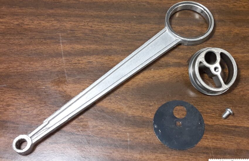 You can buy 3/8 inch self adhesive cabinet bumpers at the hardware store. Simply stick one to the front plate thumb screw to help protect your bed extension on your Singer 221 Featherweight. If you don’t happen to have 16 Featherweights, you can share the extra bumpers with your friends.