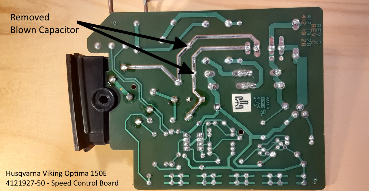 The speed controller computer board had a blown capacitor on it. It’s possible to solder in a replacement, but the goal of this project was to inexpensively repair this type of machine since they were being donated to a charity. The machine will run with the capacitor removed, but it may allow the computer board to be damaged (See notes later on in the article).