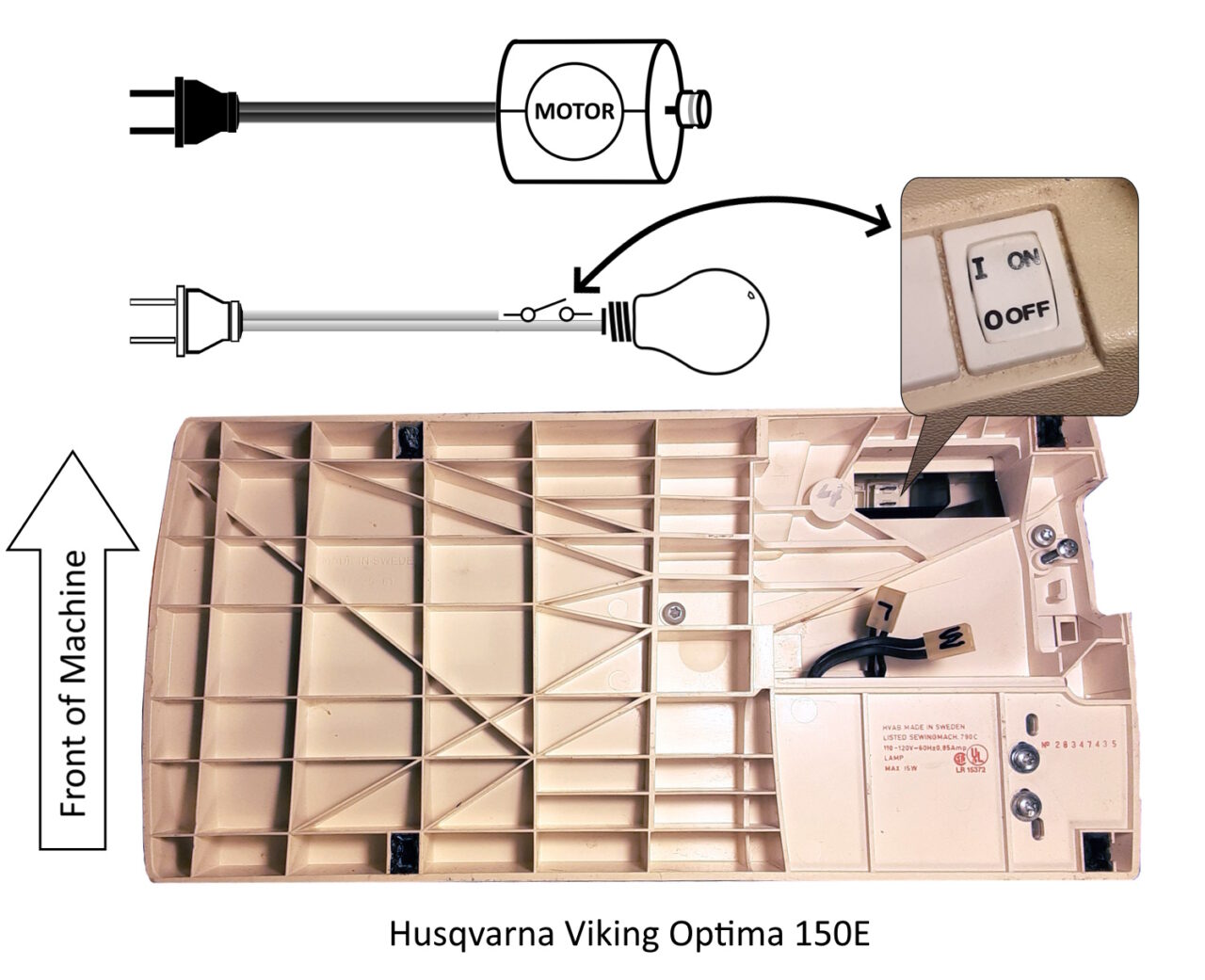 The Husqvarna Viking Optima 150E was probably the least electronically complicated machine in the Optima line at that time. It’s basically a zig-zag machine using an internal cam stack for added stitch patterns. The only “Electronic” part of the machine is it’s speed control. Other machines in the Husqvarna Viking Optima line may have “Electronic” options included, so removing the speed control board may remove options or even render the machine inoperable.