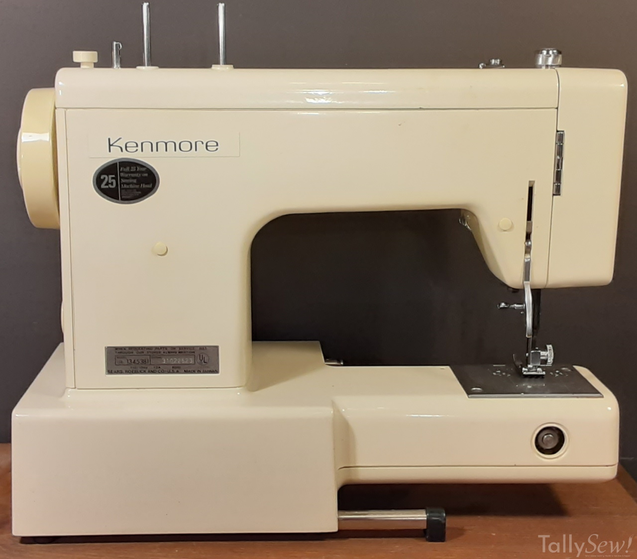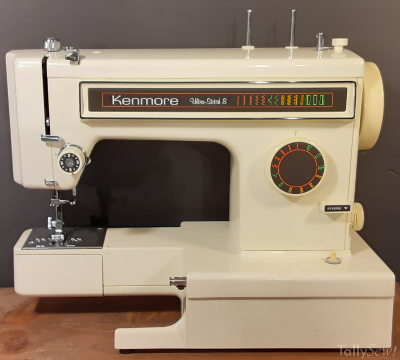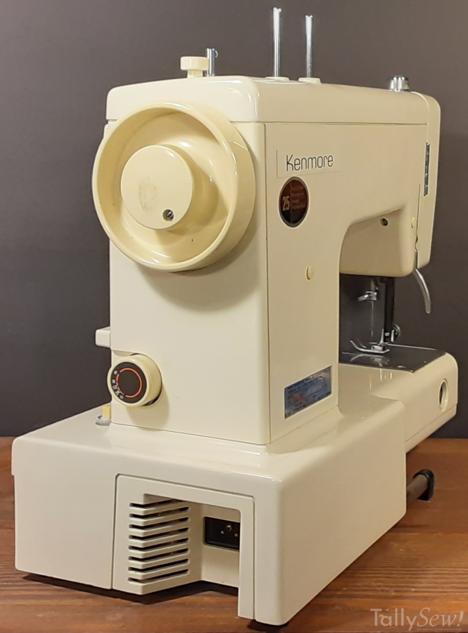Introduced in 1981, manufactured in Taiwan for Kenmore by Jaguar/Maruzen. As you can tell from the name this machine came with 8 internal stitches. This machine does have a plastic cam stack and some of the drive train contains plastic parts.