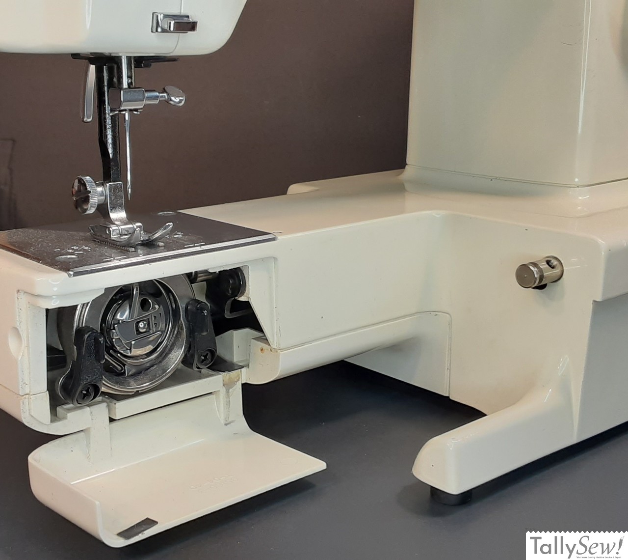 It uses standard class 15 bobbins and household “15×1” needles.