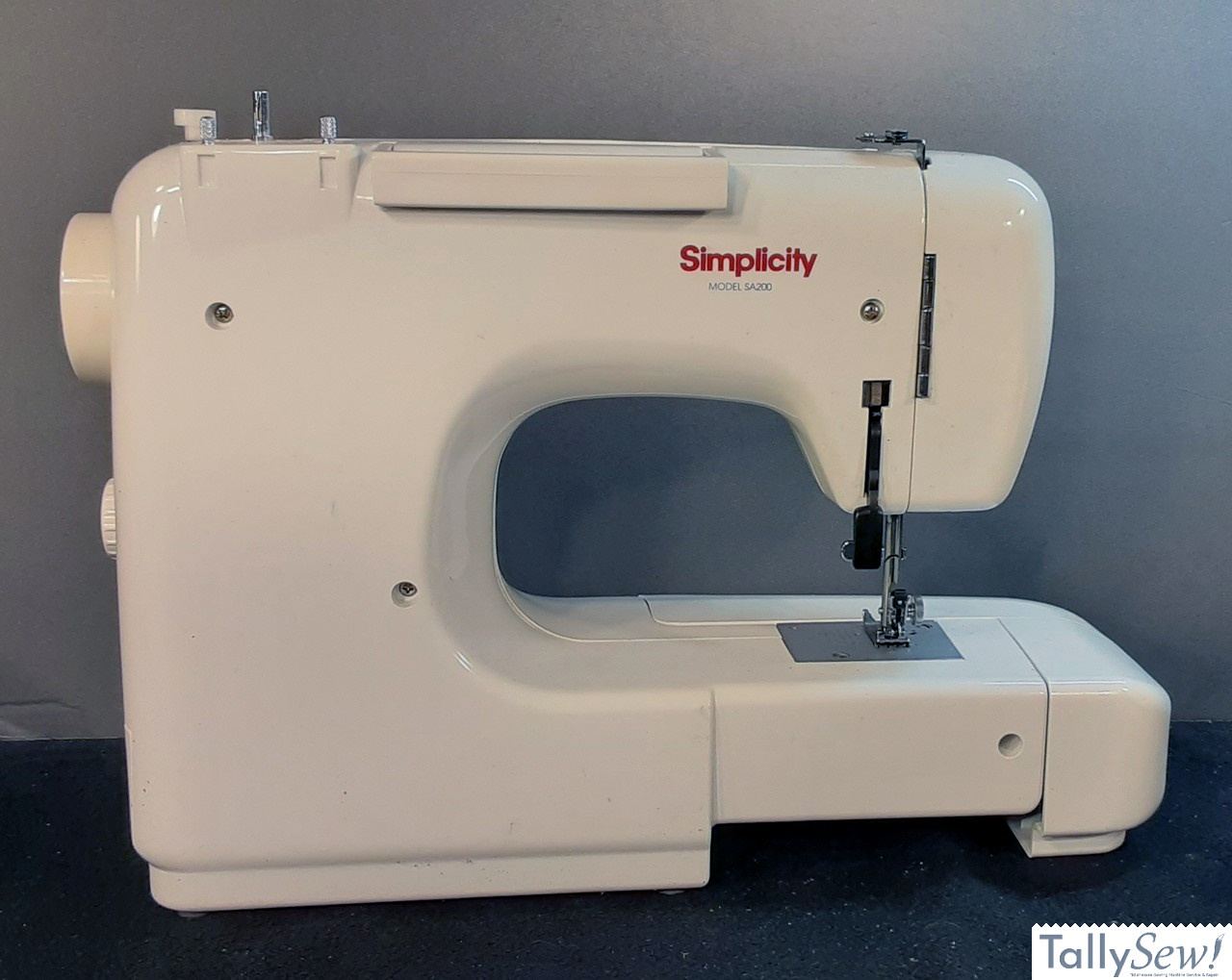 The Simplicity SA200 Pioneer II is a simple Zig-Zag machine, using an oscillating hook and class 15 bobbins, and One O’clock class 15 bobbin case, and a low shank presser foot. It’s a good starter, or travel machine.