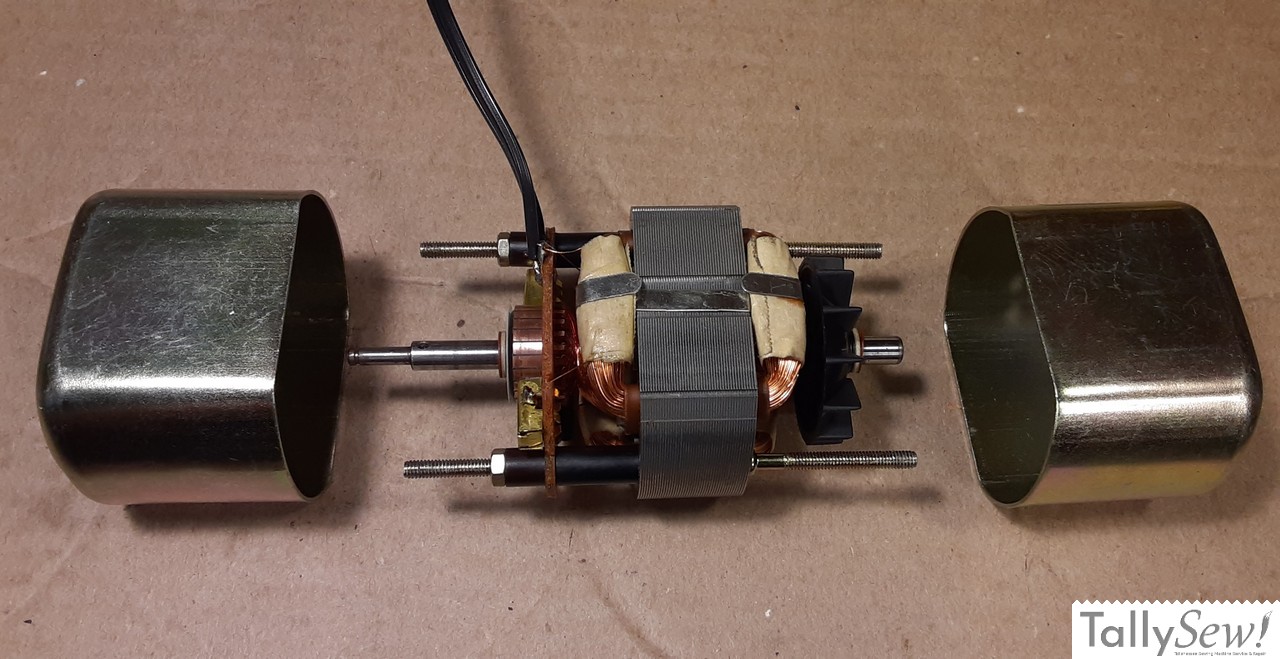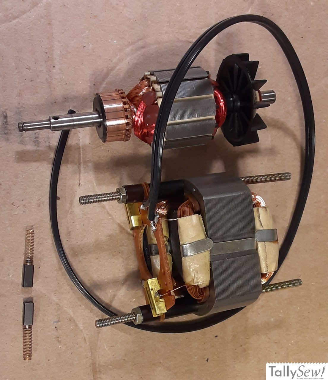 The motor was seized when I got the machine. The sticking point was in the front (pulley end) motor bushing. Even though these are “oil free” motors, they’re lubricated when they are assembled, and just like any other part with close tolerances and oil, that oil will eventually turn to varnish. I pulled the motor apart and repaired it. Works great now.