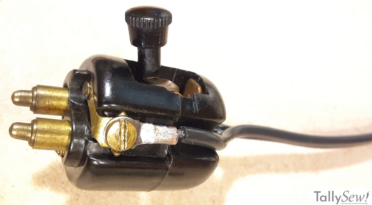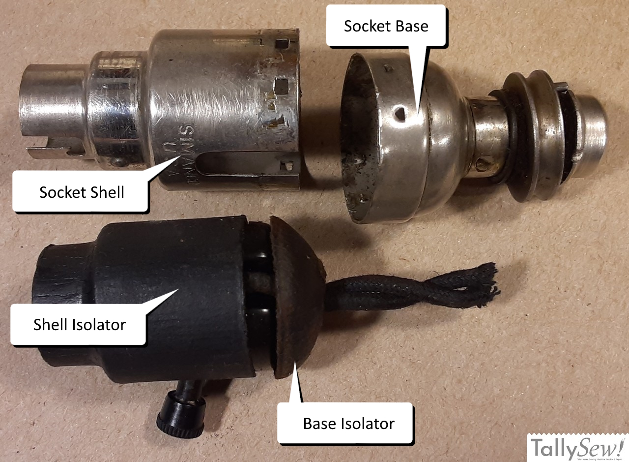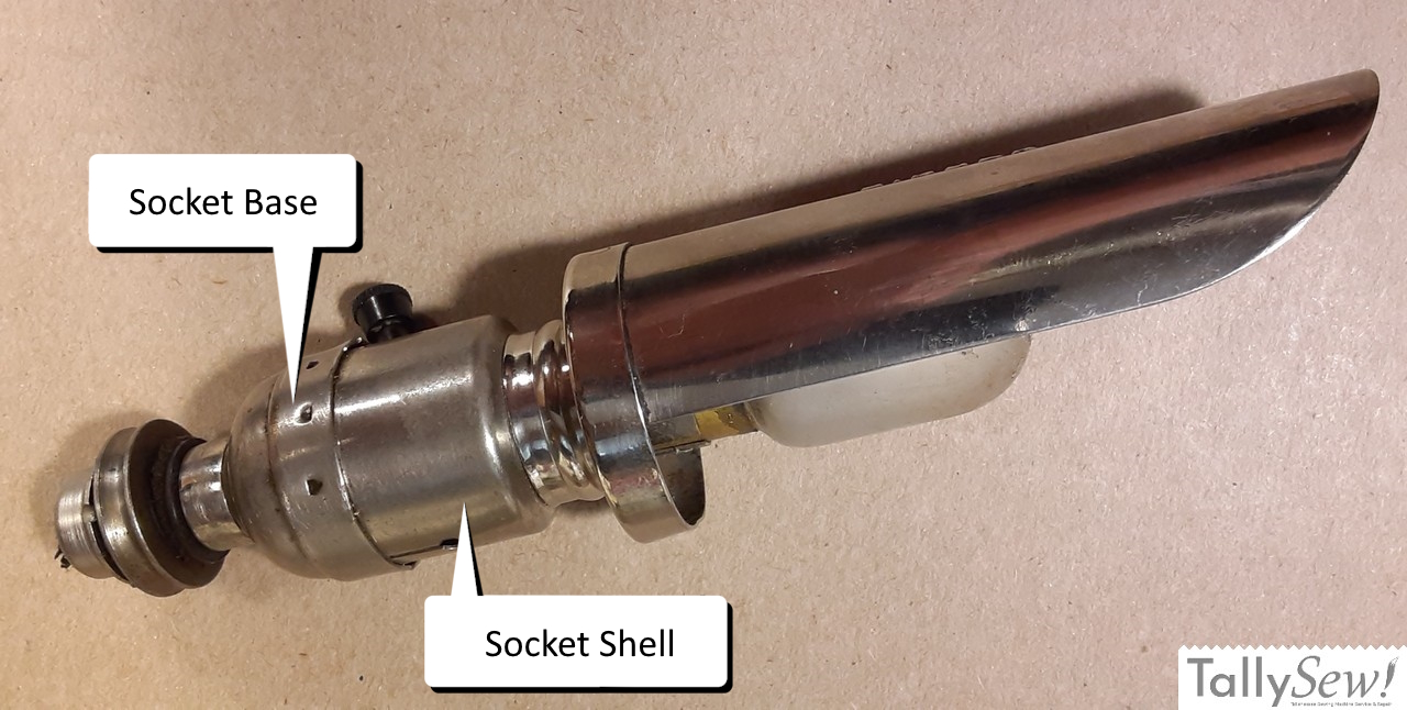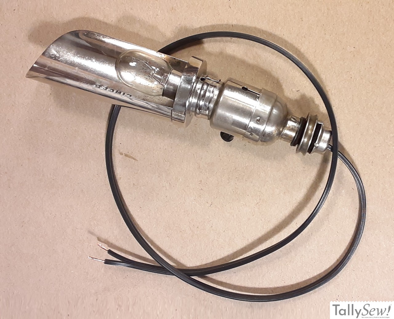Note: The lamp cord shield is a lead tube similar to those found on a Singer 221 Featherweight.