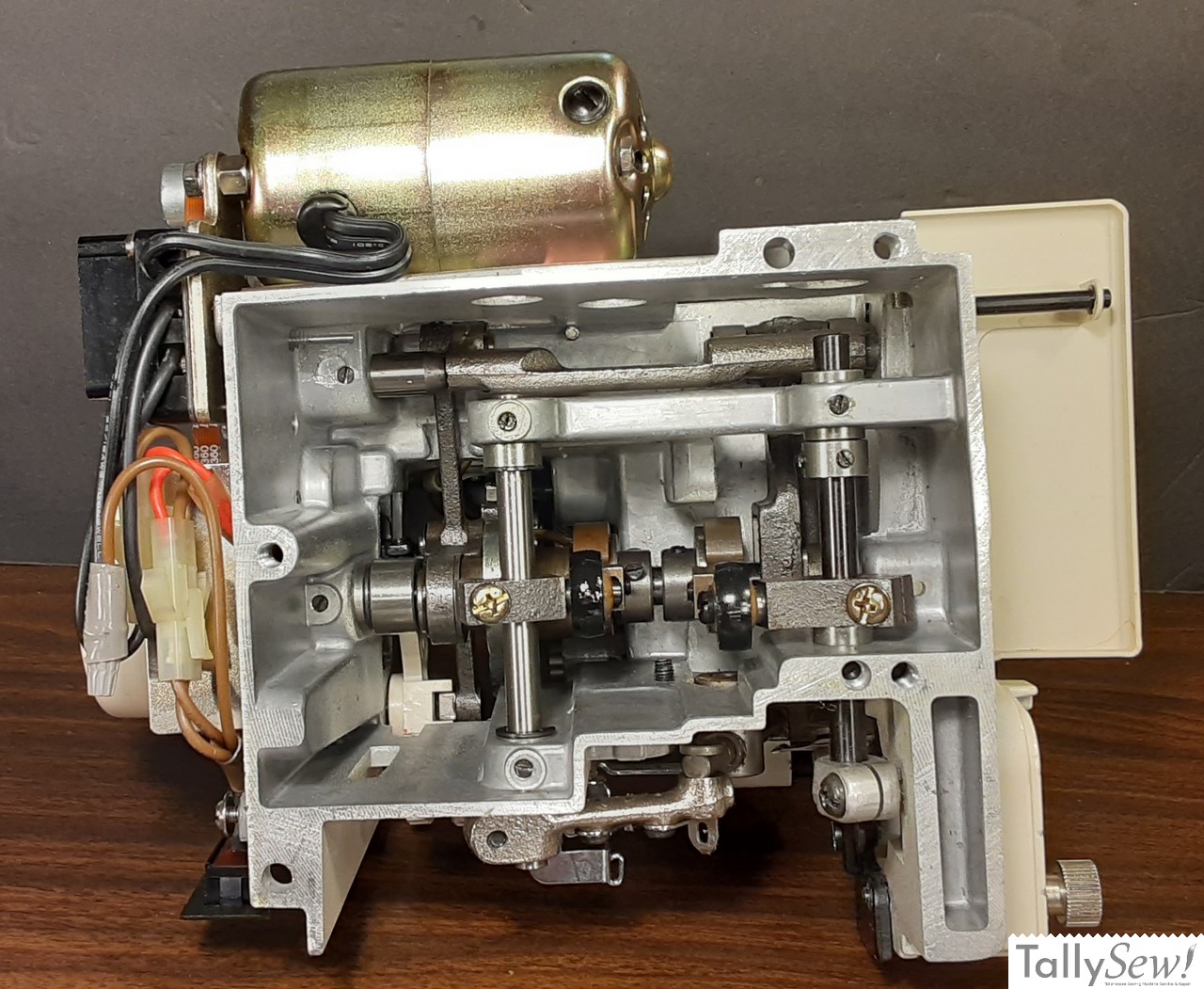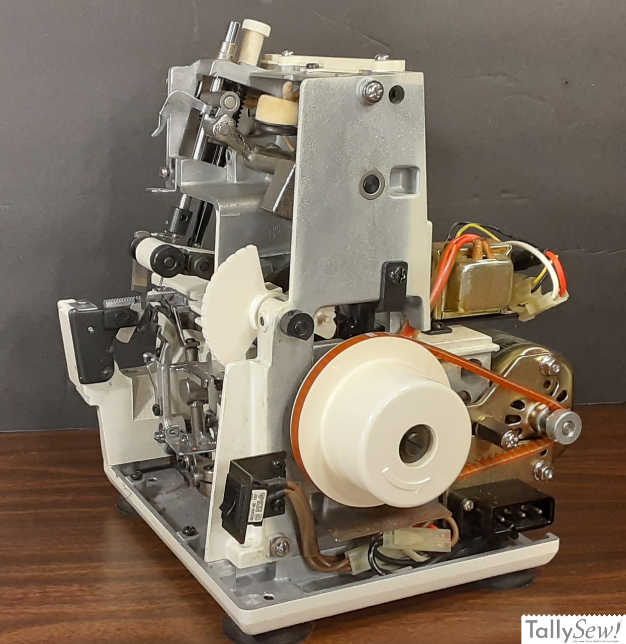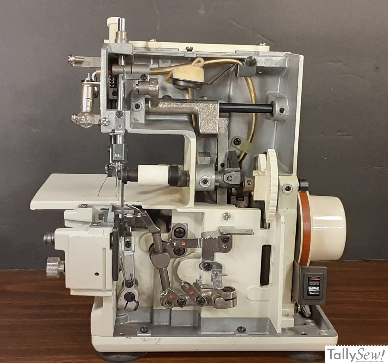 Like most overlock machines of the era, the Singer 14U44 has a metal subframe.