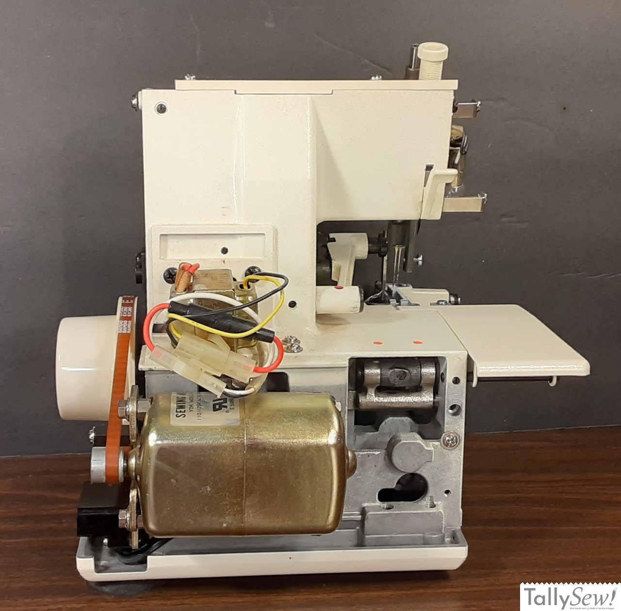 As best as I can tell, the machine on the left is a 14U44 (it isn’t marked). It’s very similar to the 14U44B on the right, except that it uses common 15×1 household sewing machine needles, and a couple of other minor differences. Both machines are strong and dependable.