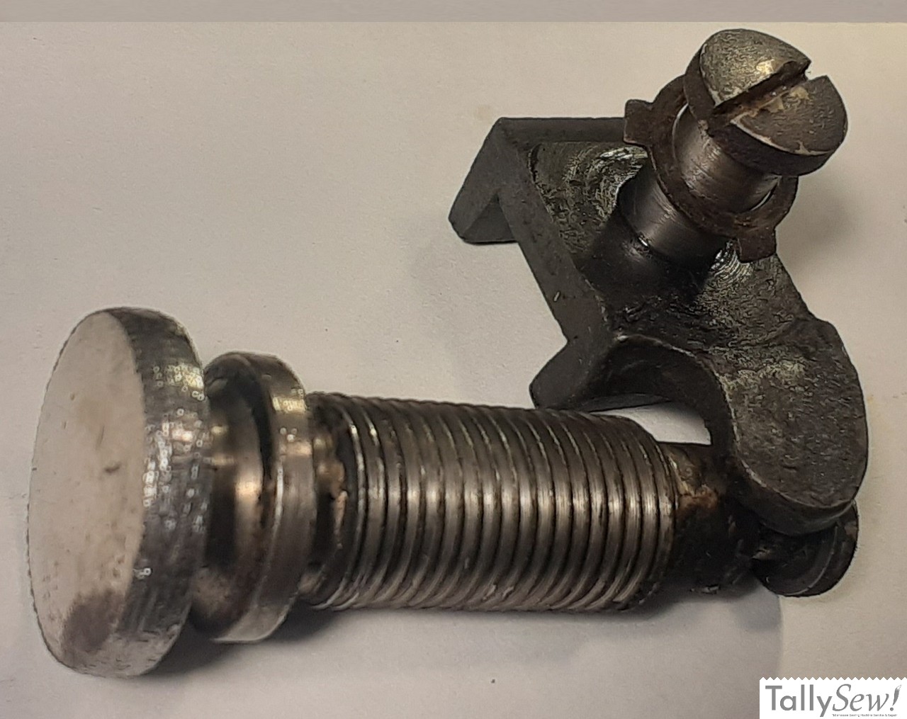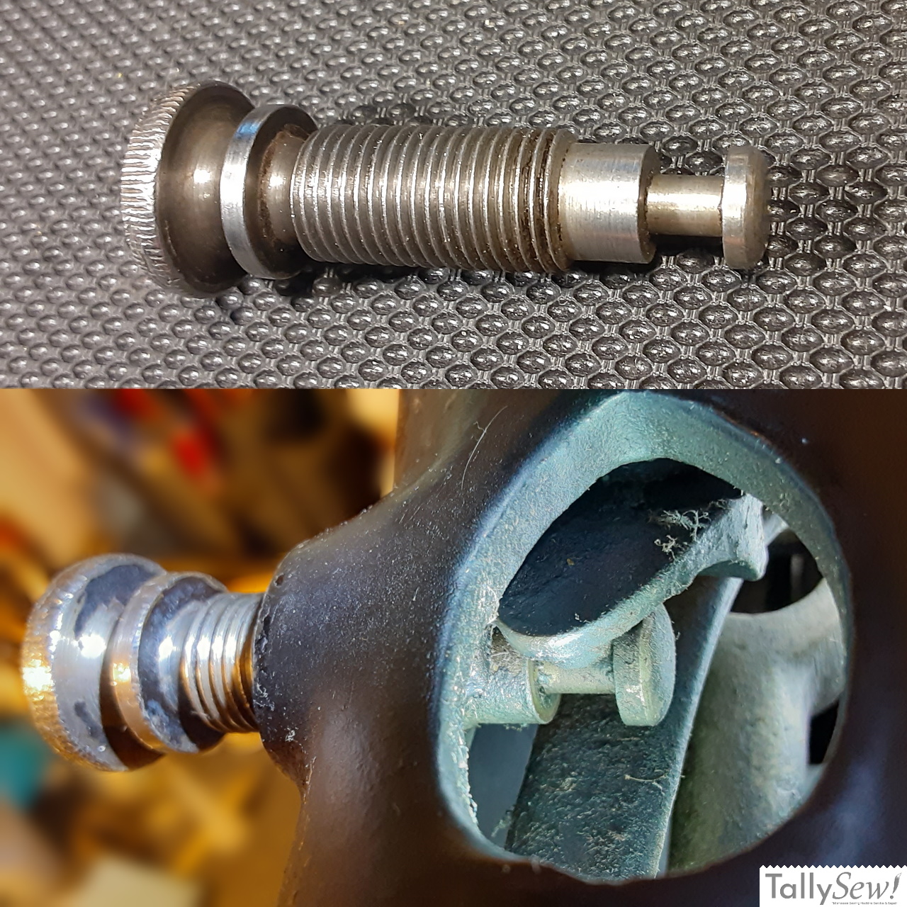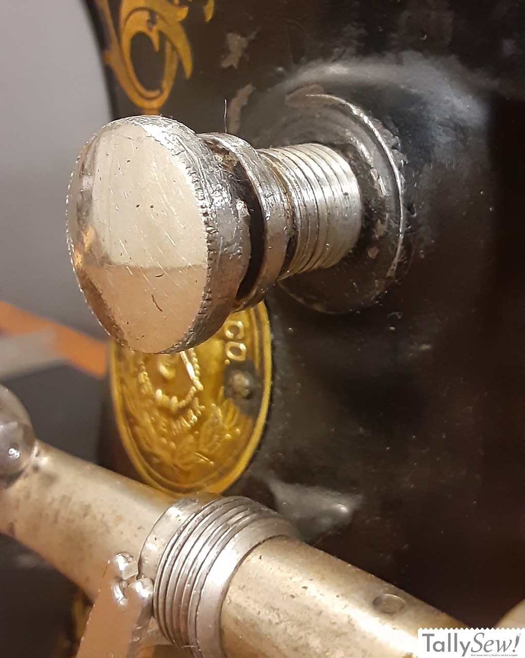 The stitch length adjustment on the model 27 is a thumb screw type. When the thumb screw is screwed all the way in you get the longest stitch length. The thumb screw will not unscrew to the point that you can remove it without damage unless the feed regulator has been removed (don’t move the feed regulator unless you really need to and know what you’re doing).