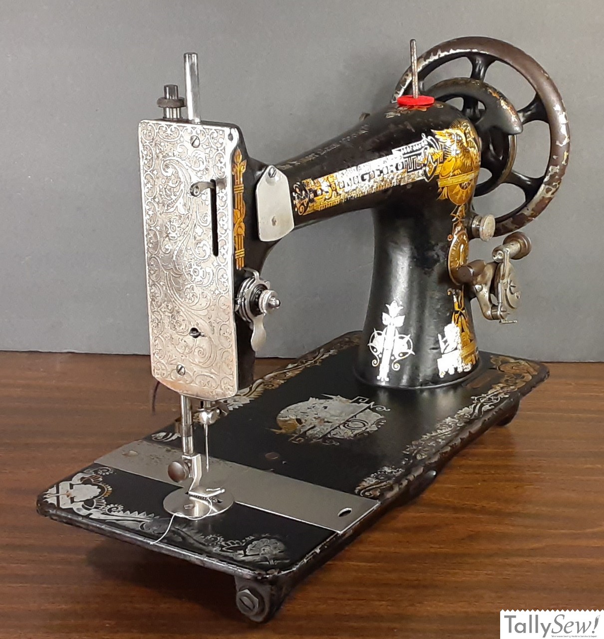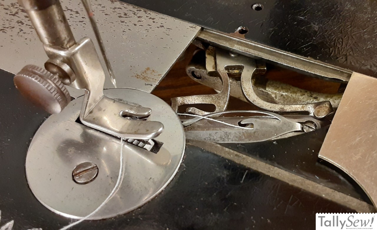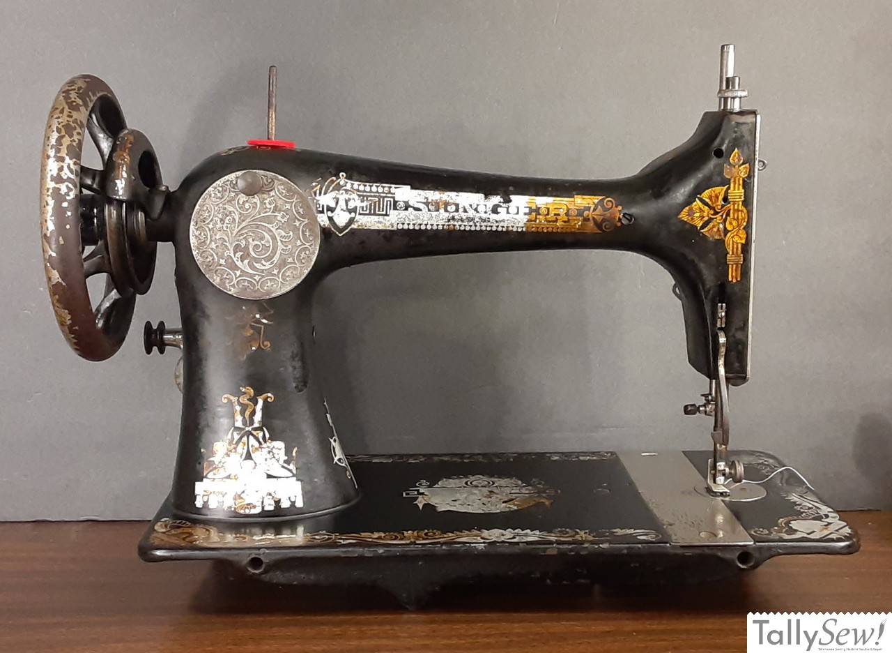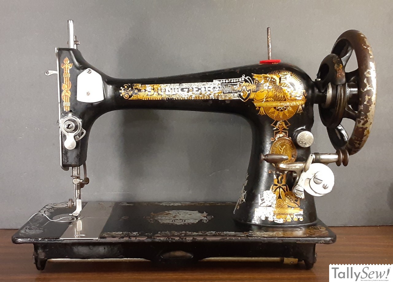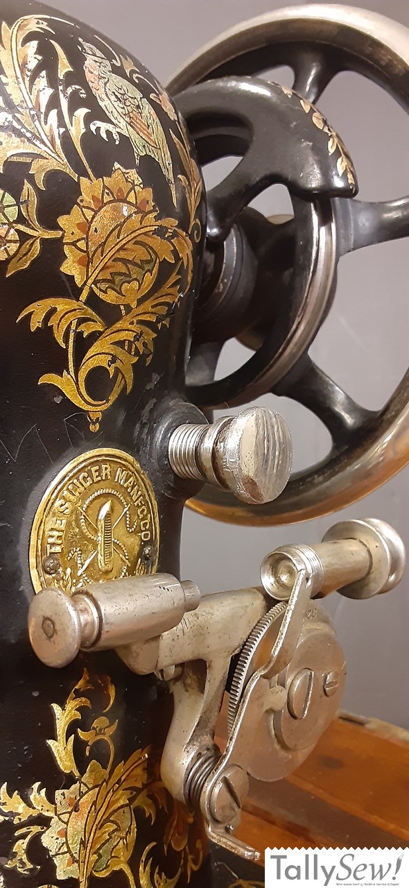 Above is an example of the Singer 1887 model VS2 with it’s distinctive fiddle base, and non tension release tensioner.