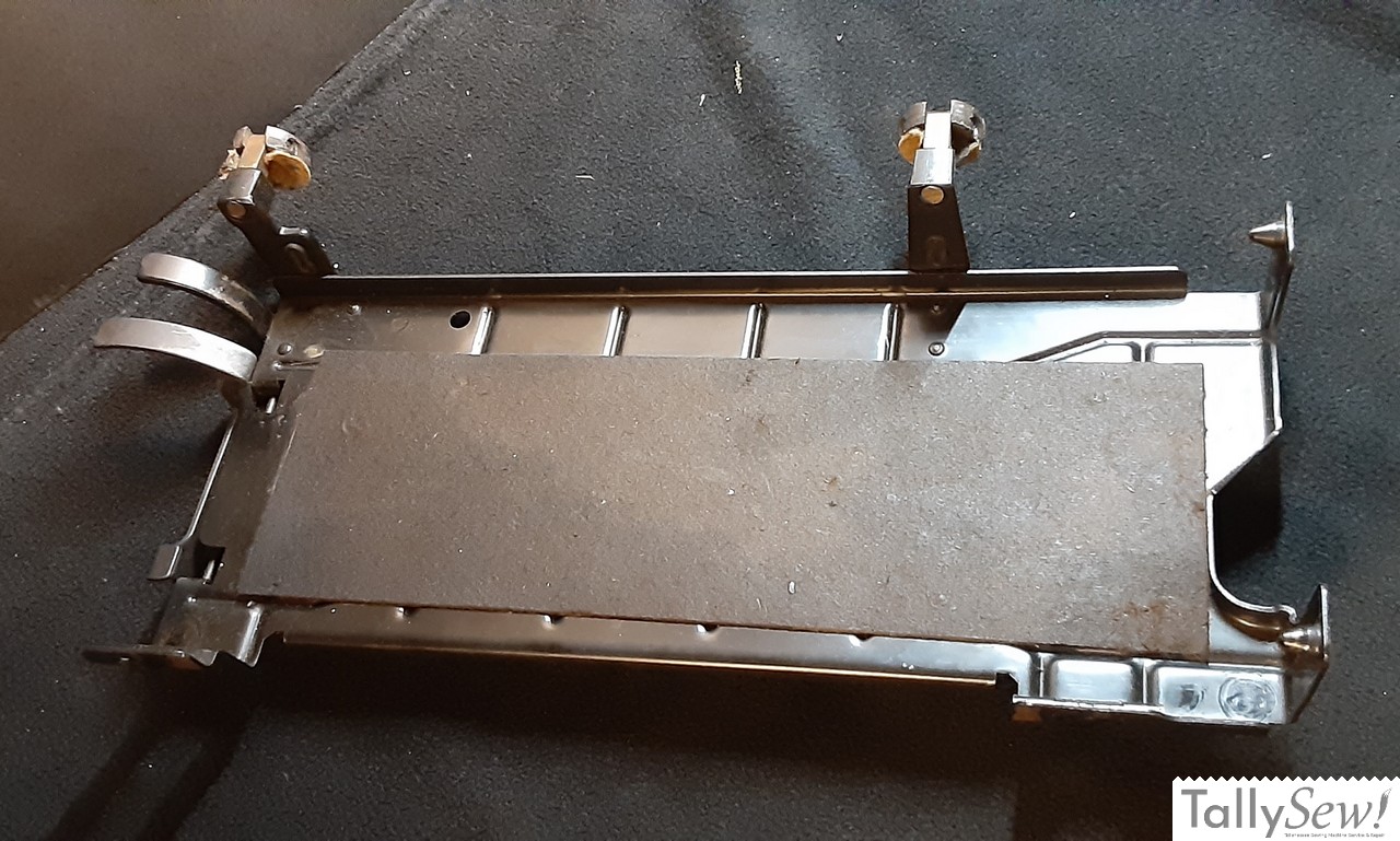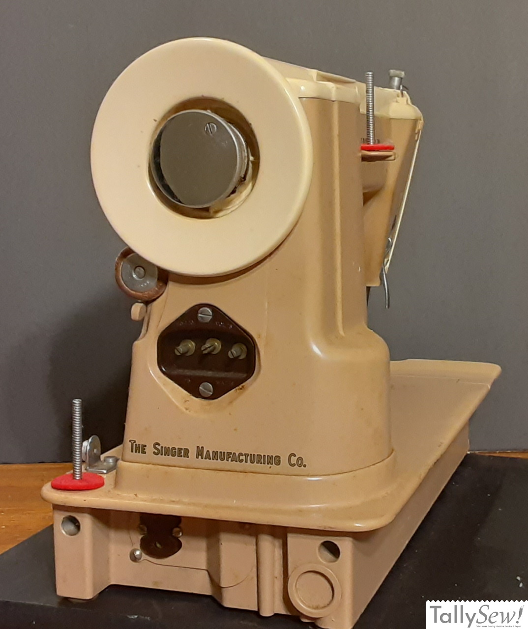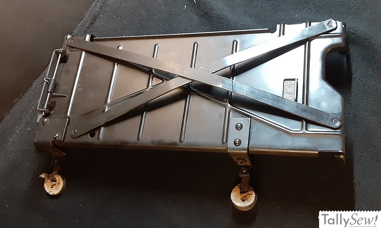 This 301A is a 1956 Light Beige Oyster White, or factory designation “LBOW”. This one still needs a good cleaning. The two tone Singer 301A was only produced with a short bed.