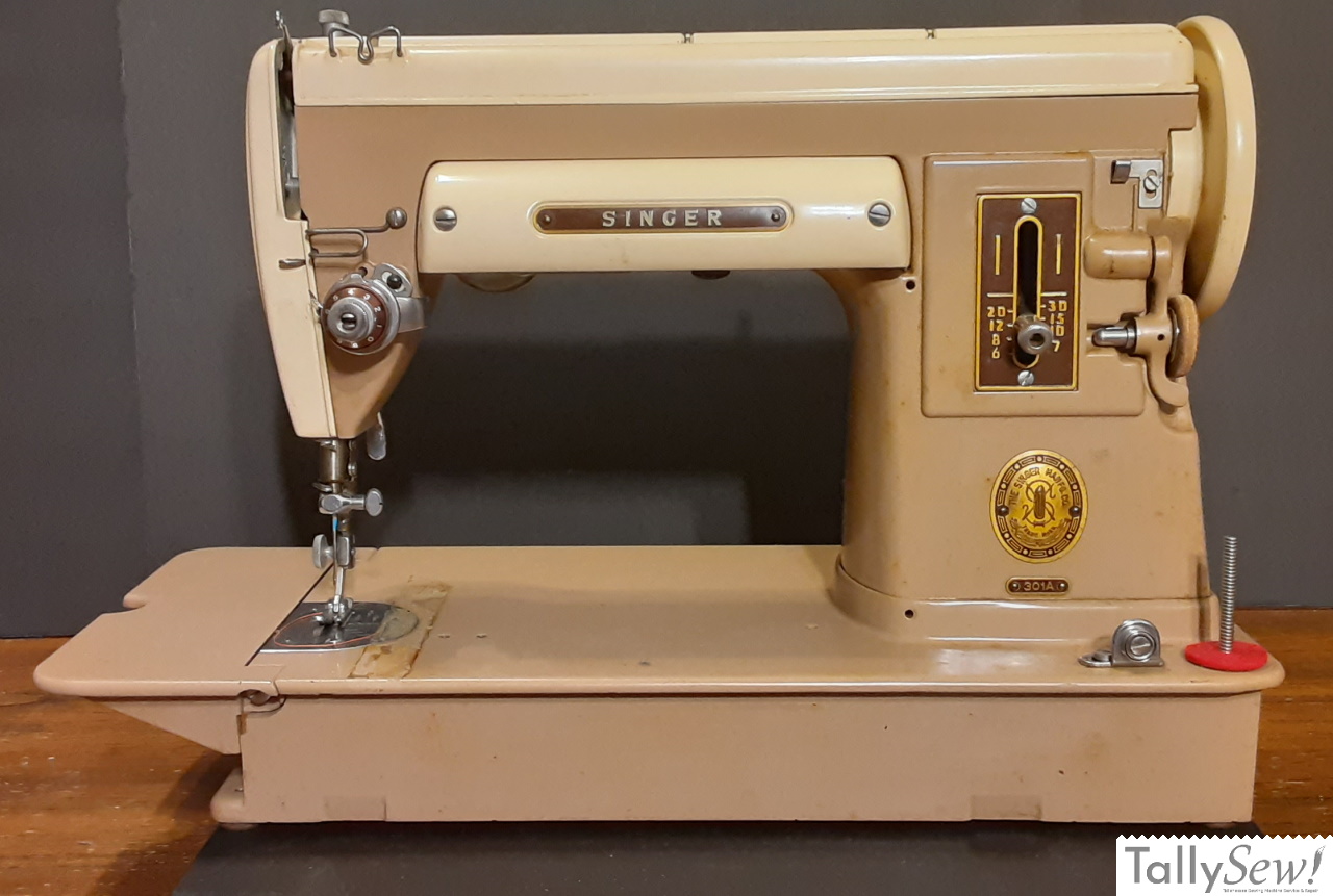 This is a 1952, Tan, long bed, Singer 301. The all tan machines where produced in both long and short bed configurations.