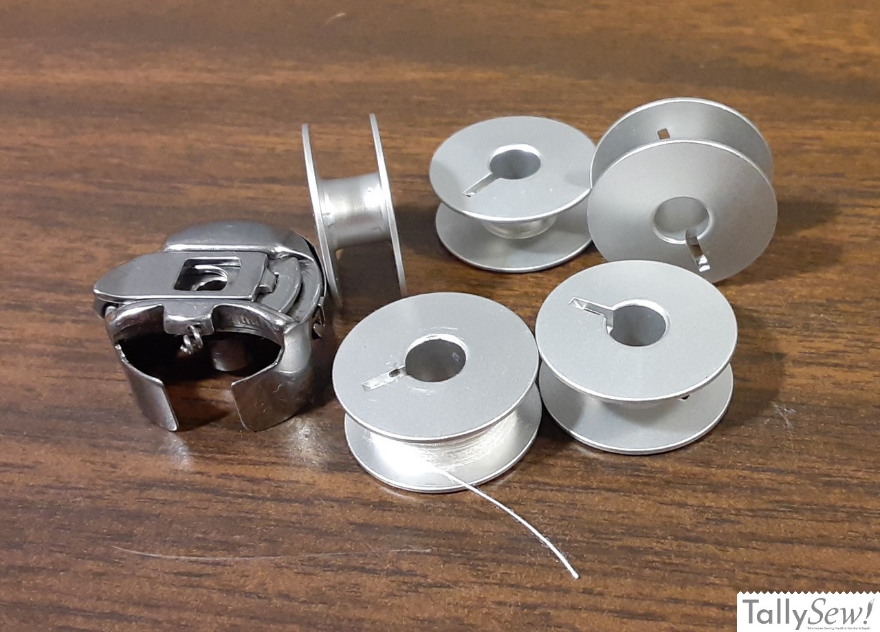 The 306 uses standard class “L” bobbins. The ones I purchased are a cast aluminum. They look good, but the center hole is too tight to fit on the bobbin winder post without using far more force than I’m comfortable using on this machine. I will probably open the hole up a little to make them more usable, but that really isn’t something you should need to do on a new part.