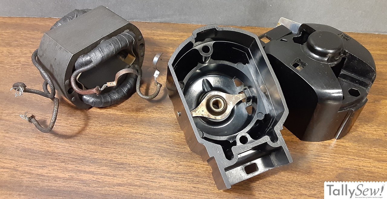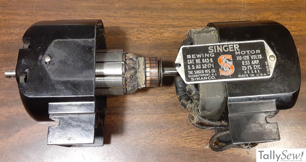 I cleaned and rewired the motor, replaced the grease wicks and grease. Put it back together and tested it for function. The motor sounds and runs better than it did when I started. The BA3-8 is not the smoothest or quietest motor Singer made, but it’s easy to work on and dependable when maintained correctly (this motor had not been maintained well).