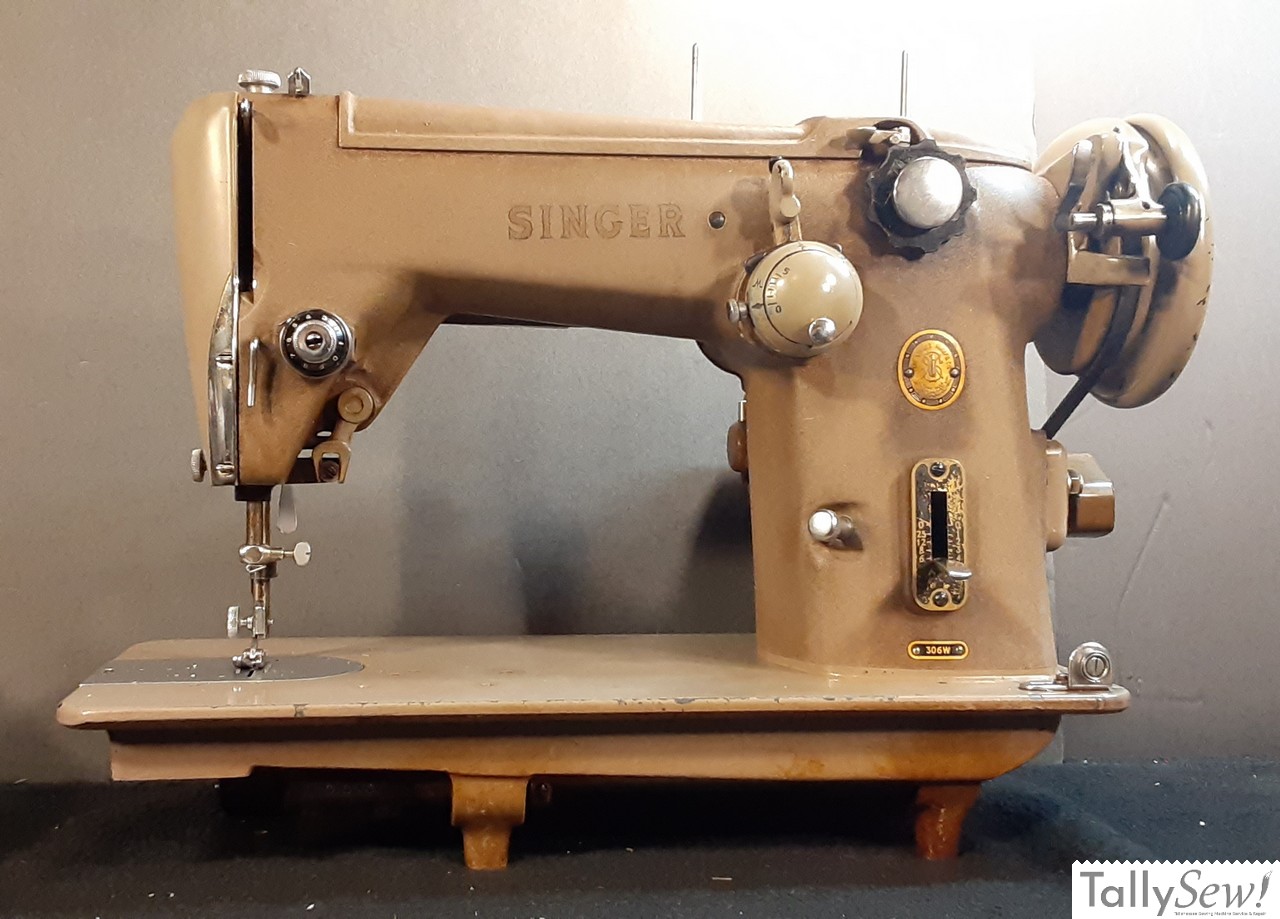 Tan 1956 or 1957 Singer 306W Swing Needle manufactured at the former Wheeler & Wilson plant in Bridgeport, Connecticut, United States