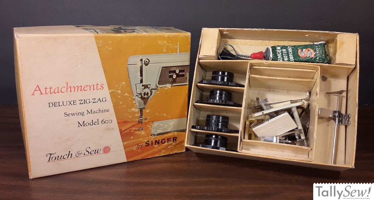 I don’t know what all accessories came with the 600 Auto-Reel, but these came with mine. Obviously the Singer Attachments 161818 is incomplete, and I’m not sure that either box has the correct “Special Discs” in it. Side note, These discs are often referred to as “Top Hat” discs due to their appearance.