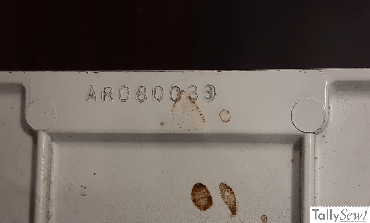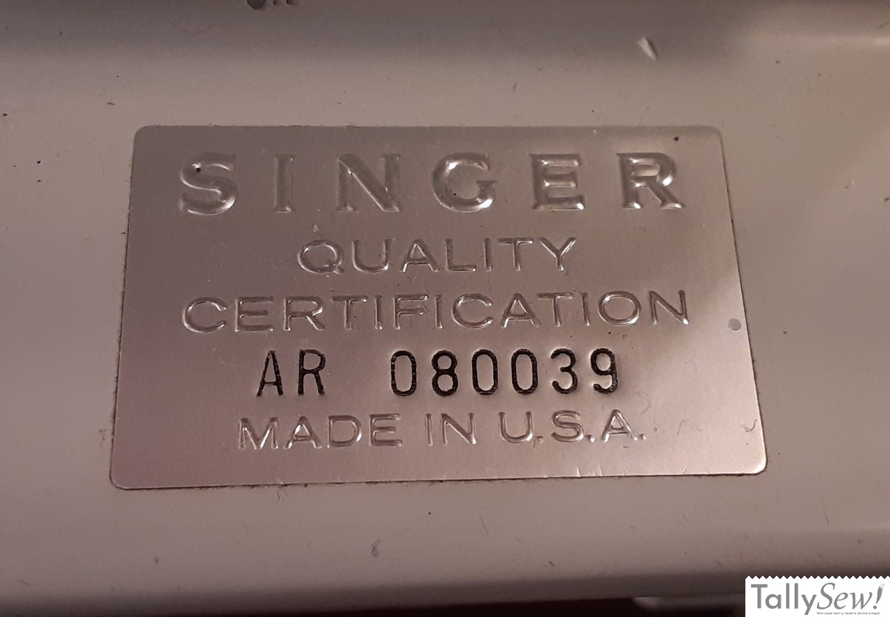 Standard Singer medallion found on a lot of the Touch & Sew machines, along with the “Certification” plate, and finally the serial number stamped into the underside of the deck.