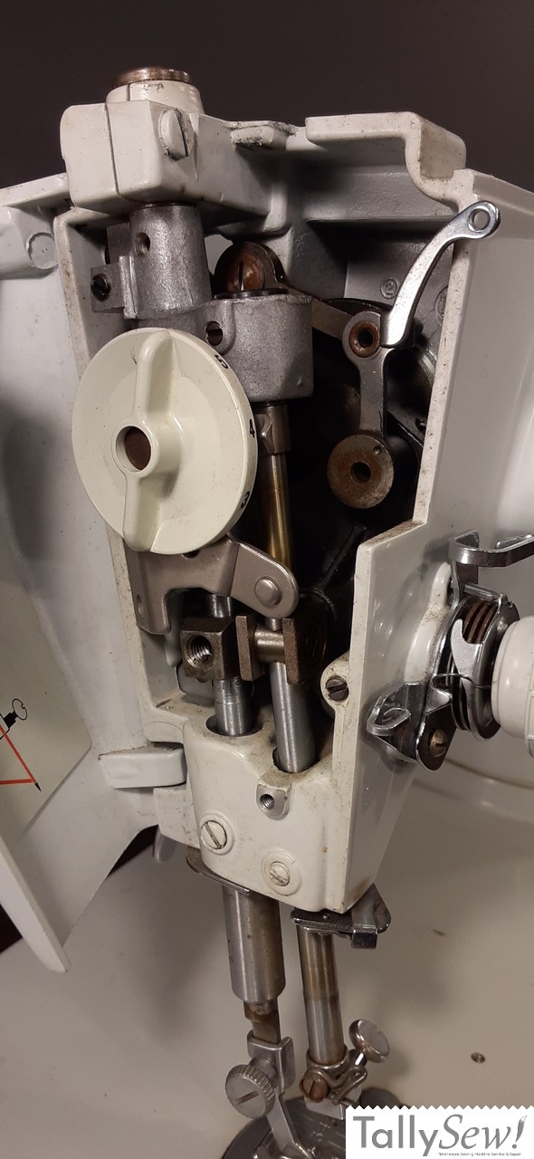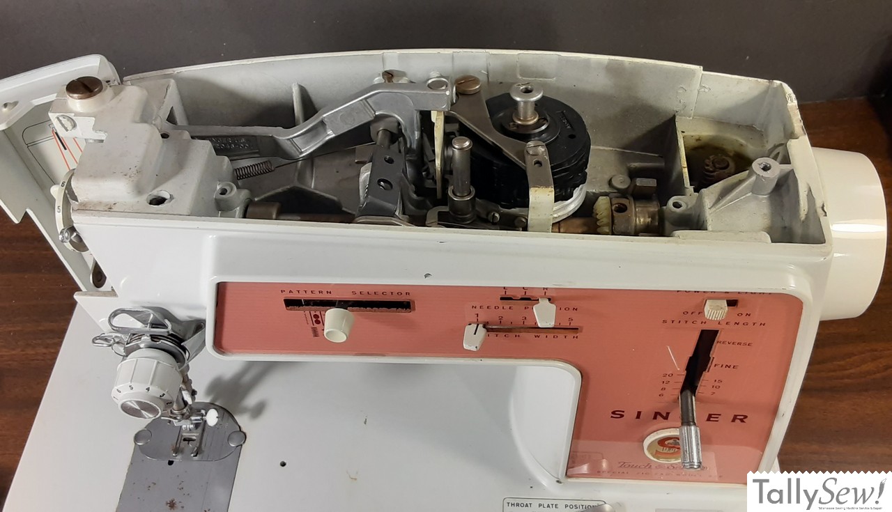 This machine was given to a friend, and she passed it along to me in case it could be put back into service for a reasonable price. I had hoped it was one of those rare all metal geared 626 Touch & Sew machines, but alas it was not.