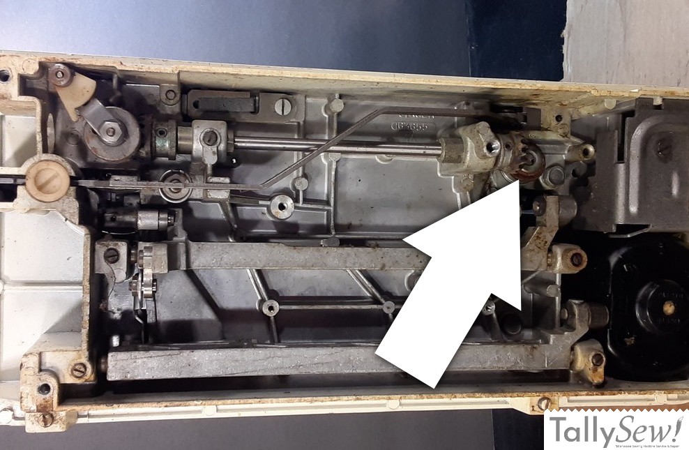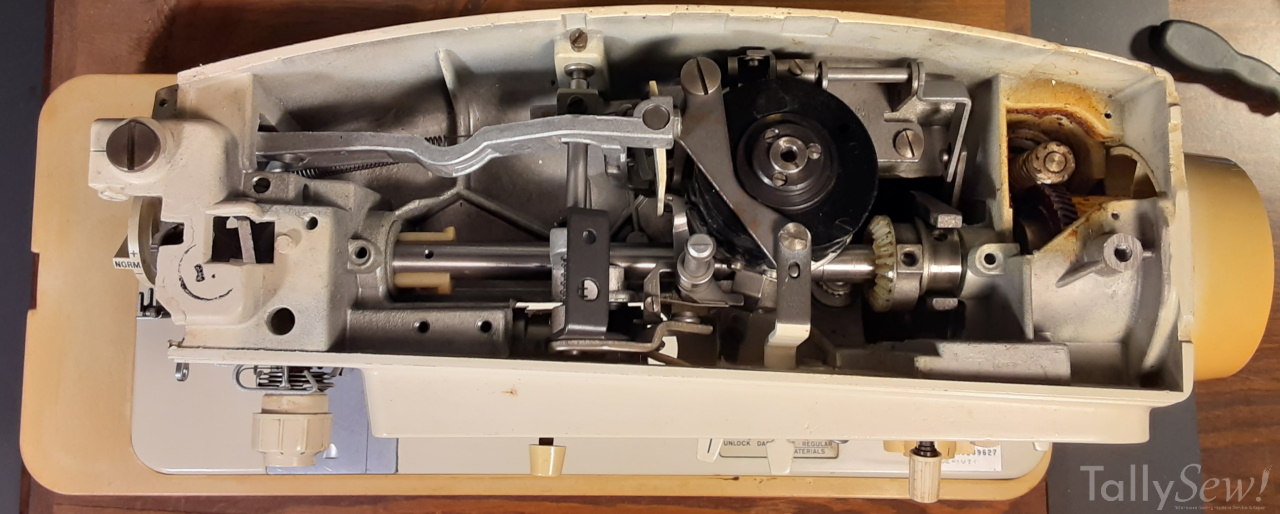 Typical of 1970s Singer sewing machines this has plastic gears that have failed. These broken gears can be replaced if you have the patience and mechanical ability, but paying someone to restore one of these machines tends to be cost prohibitive.