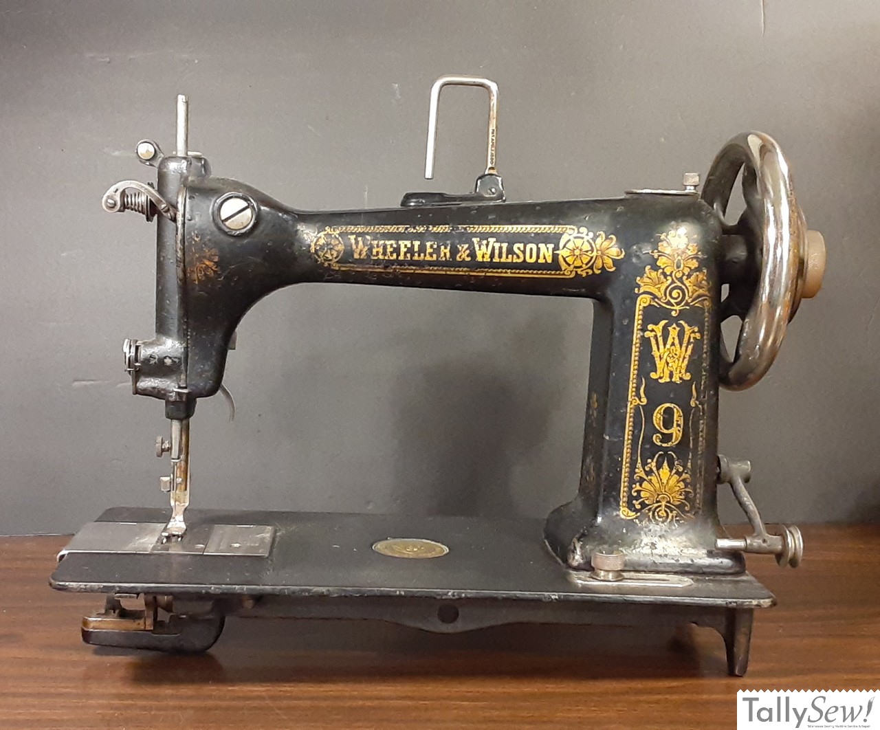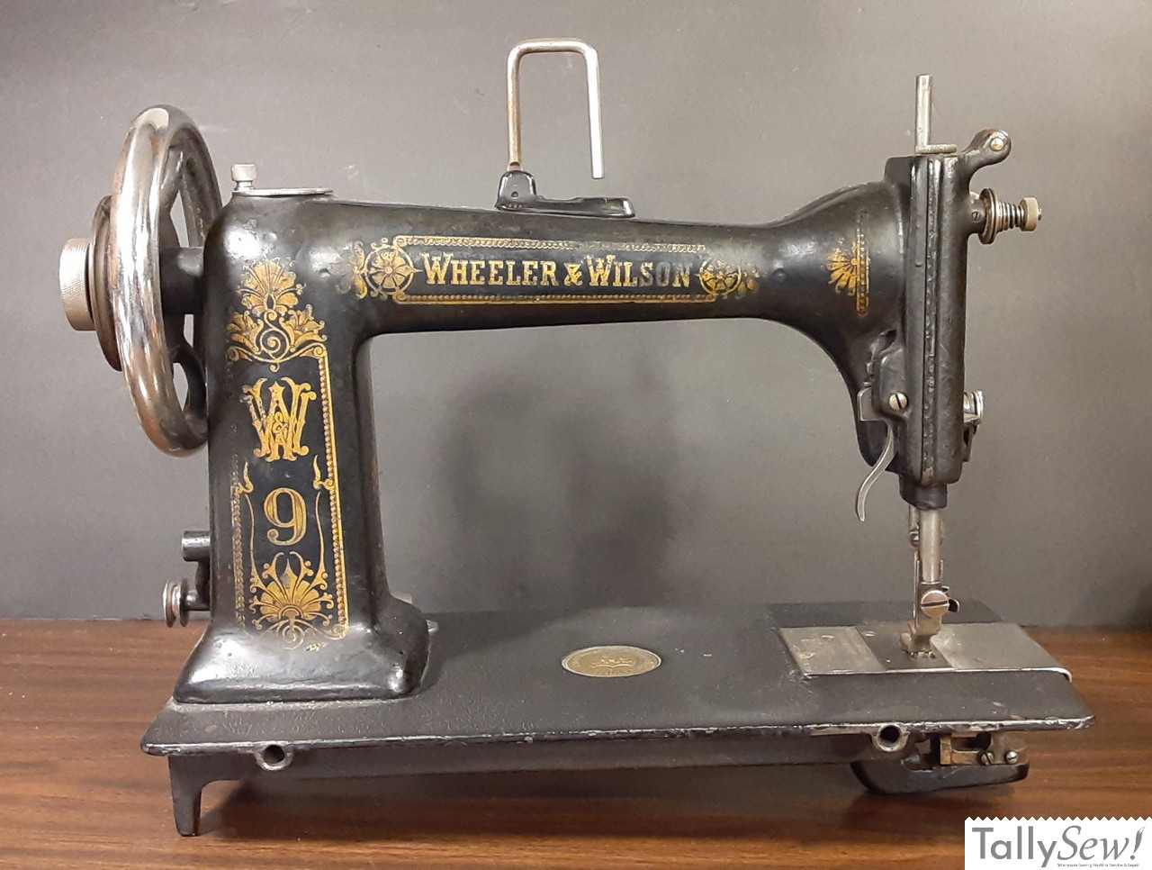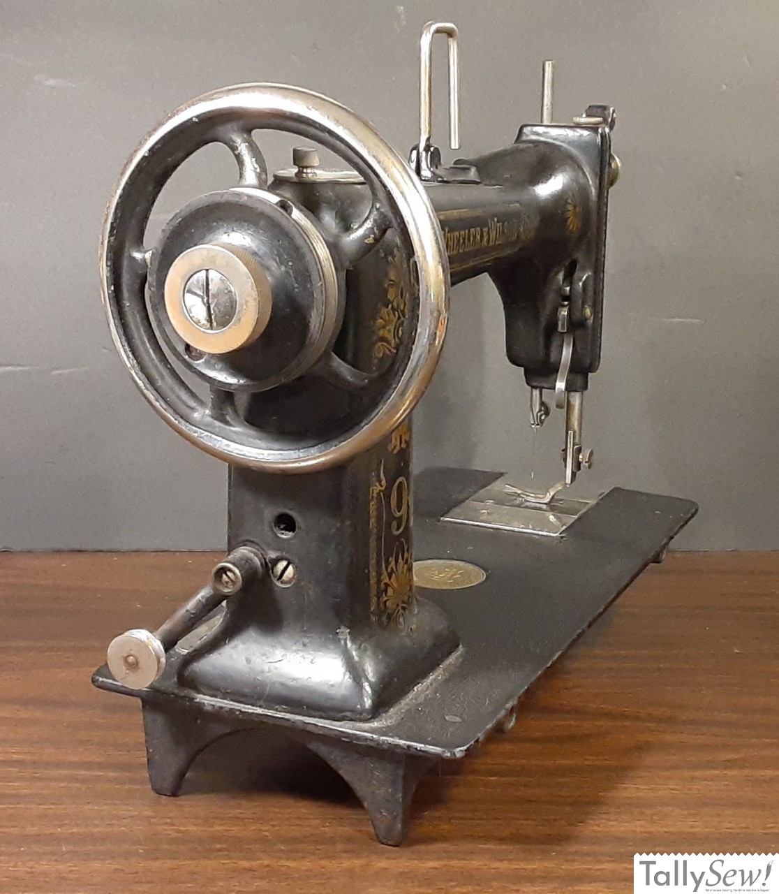 This is an original Wheeler & Wilson No. 9 manufactured from roughly 1890 to 1895. On very early examples 1887 to 1889, the stitch length adjuster was located on the pillar of the machine, so we know this machine was made before that.