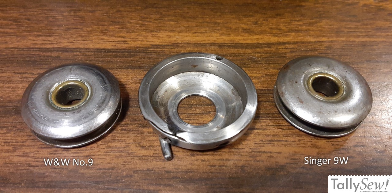 * Some of the Singer 9W machines use a bobbin that is very much like the bobbin used in the Singer 301 Slant Needle. I did not test the bagel bobbin from the Wheeler & Wilson No. 9 in these machines.